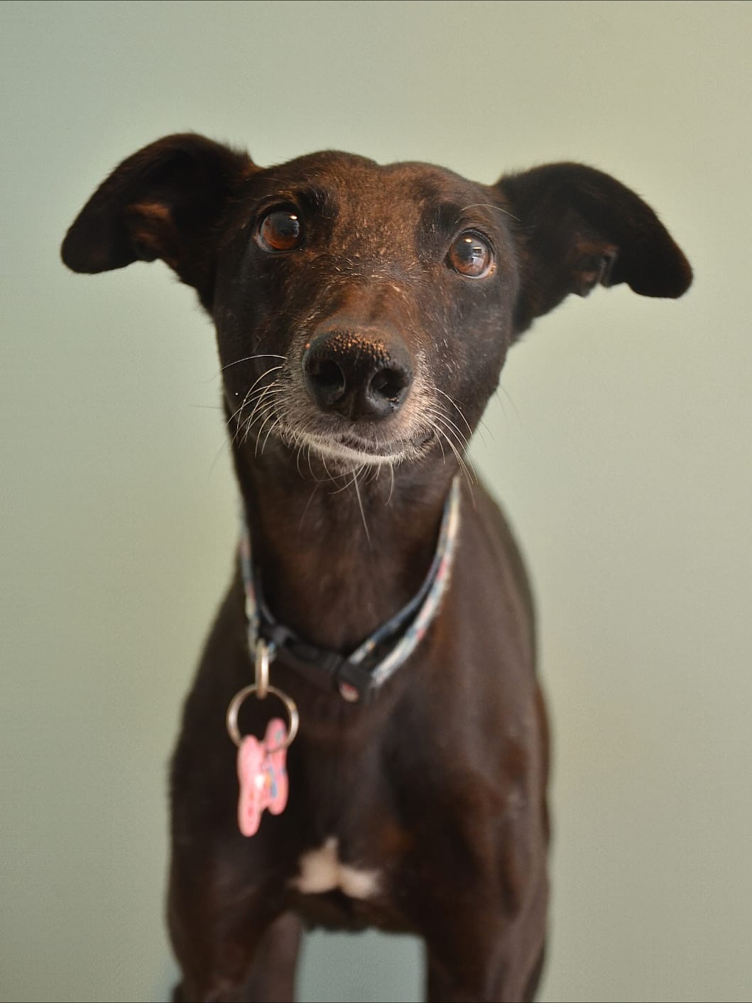 Esta hermosa galga de 6 años, rescatada con sus cachorros, ahora busca un hogar definitivo donde la amen mucho.